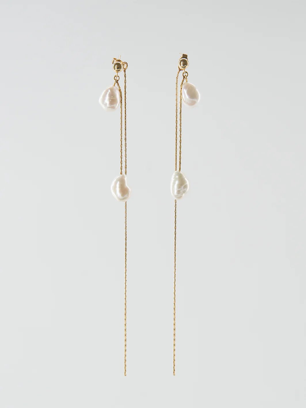 Un minimalisme sophistiqué définit ces boucles d’oreilles, au design à la fois simple et élégant, ornées de deux perles baroques suspendues à l’or et d’une délicate chaîne en argent. Ces boucles d’oreilles polyvalentes peuvent être portées de trois façons différentes : comme une élégante boucle pendante à perle, comme une pièce forte plus volumineuse, ou comme une chaîne minimaliste et chic.